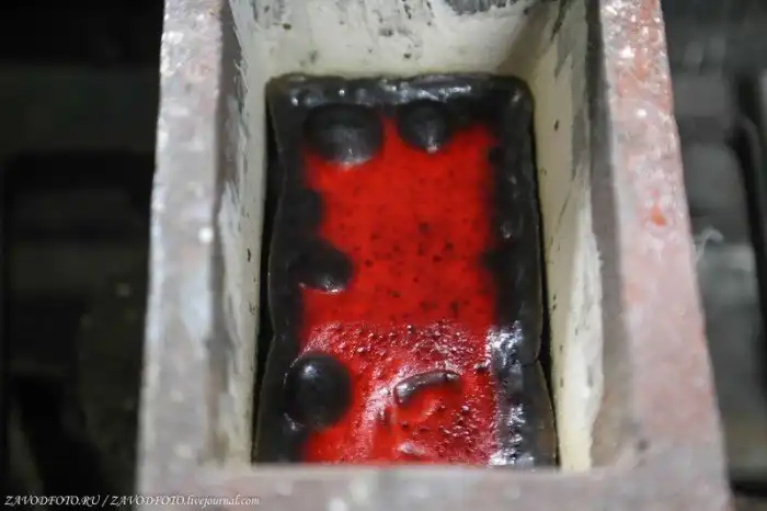 А вот и кульминация плавки, розлив золота в форму.