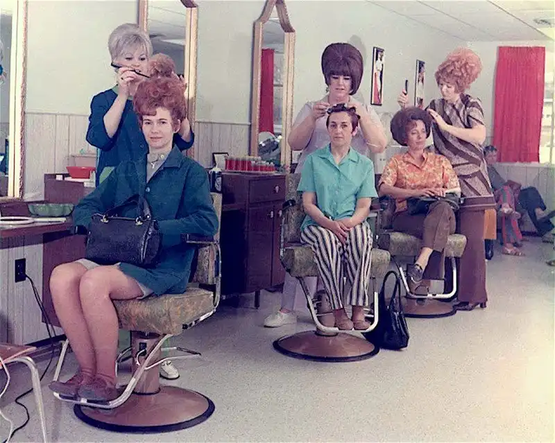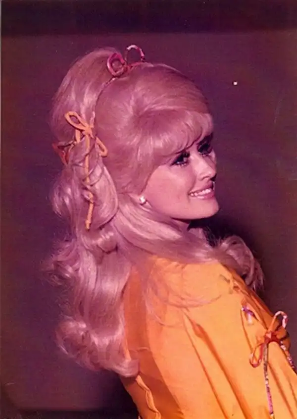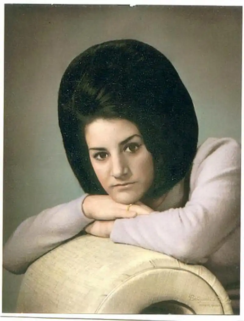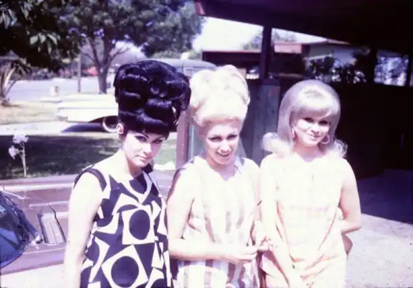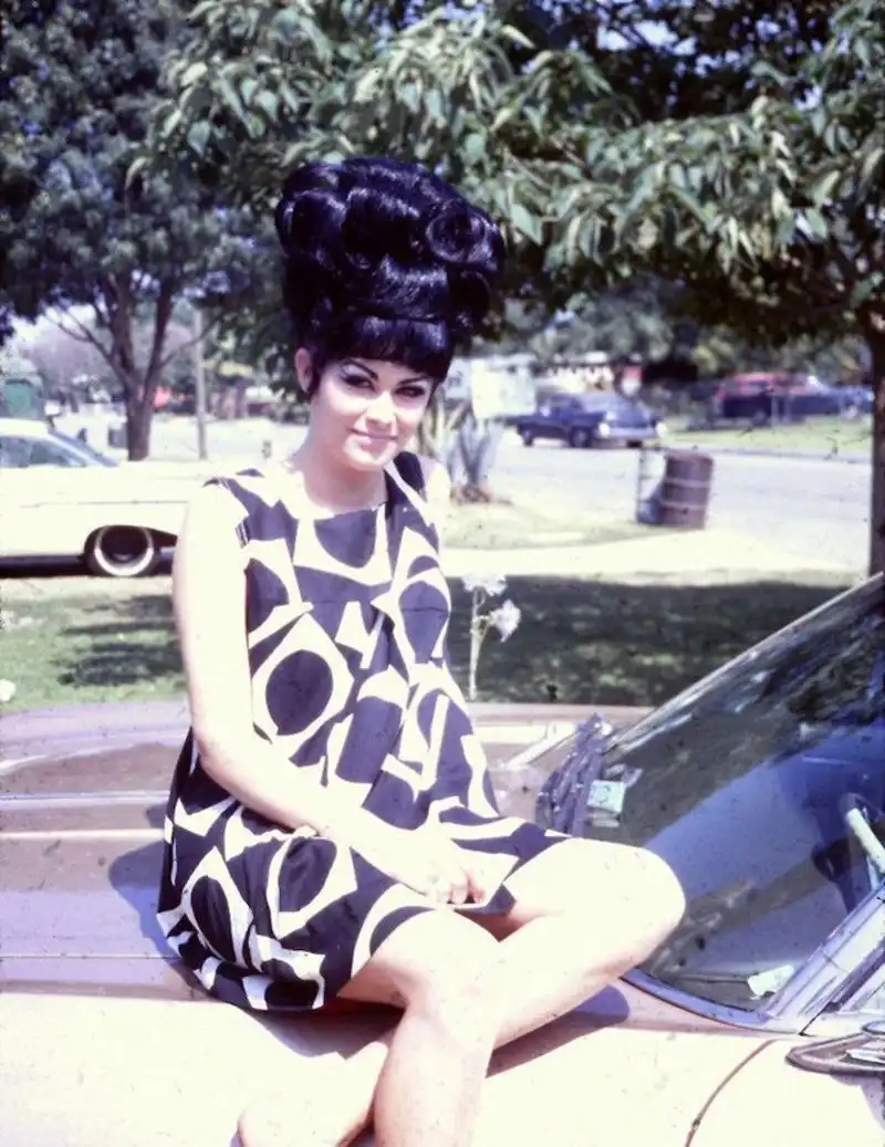 Подозреваю, что в 60-х хайр-стилисты и прочие парикмахеры были самыми богатыми людьми после поп-звезд, поелику живой девушке самой соорудить на голове вот ЭТО было бы точно не под силу. Понятно, что в ход шли парики, шиньоны и разная требуха, закладываемая временами внутрь конструкций для объема. Так бы и мучились, но настало время хиппи с их культом естественности, и парикмахерам работы стало меньше...