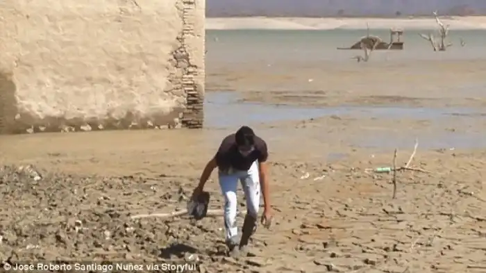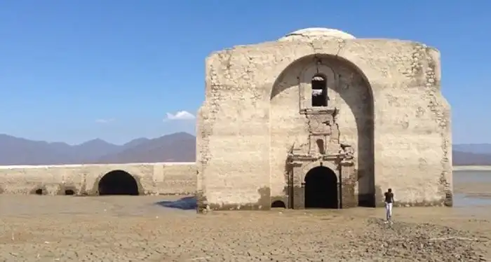 В 1962 году была воздвигнута плотина "Бенито Хуарес", полностью затопившая древний храм. Ежегодно древняя постройка показывалась из-под воды, но в этот раз засуха полностью обнажила ее.