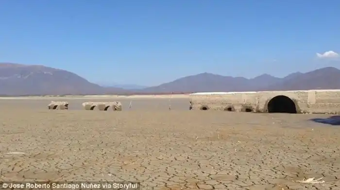 Сильная засуха практически иссушила плотину "Бенито Хуарес" в Мексике. Еще в 1960-х годах это водохранилище затопило древний храм, возведенный монахами-доминиканцами. За последние месяцы уровень воды сильно упал, полностью обнажив церковь. Несмотря на долгое пребывание под водой, 400-летняя постройка прекрасно сохранилась. Засуха полностью открыла церковь монахов-доминиканцев в Мексике