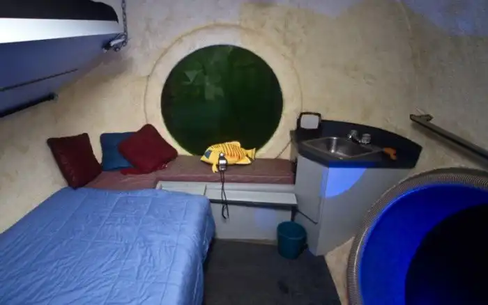 Кроме этого, было и еще одно важное строение. Несмотря на свою аскетичность, «Ракета» была в чем-то даже более интересна с точки зрения всего проекта. Эта башенка располагалась на глубине 30 метров и была сделана для того, чтобы выяснить, как именно аквалангисты перенесут крайне тяжелые условия подводной работы и жизни.