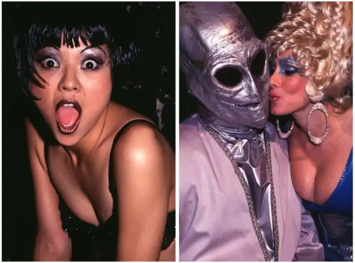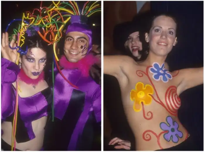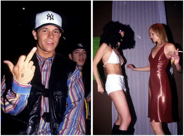 Слева - Марк Уолберг тусуется в клубе USA в 1993-м. Спава - Амбер Валетта отмечает день рождения в Palladium, 1995