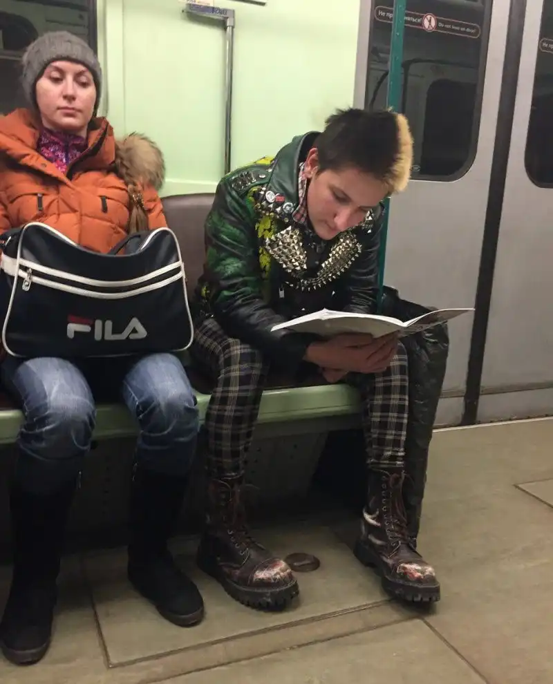 Очередная подборка фотографий странных и модных персонажей, которых можно встретить в российском метро.