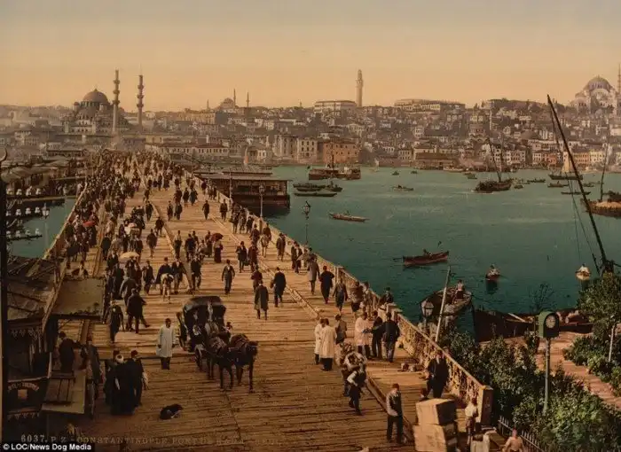 Вид с моста в Константинополе - месте, где Европа встречается с Азией. Вот она, повседневная жизнь города в конце 19 века