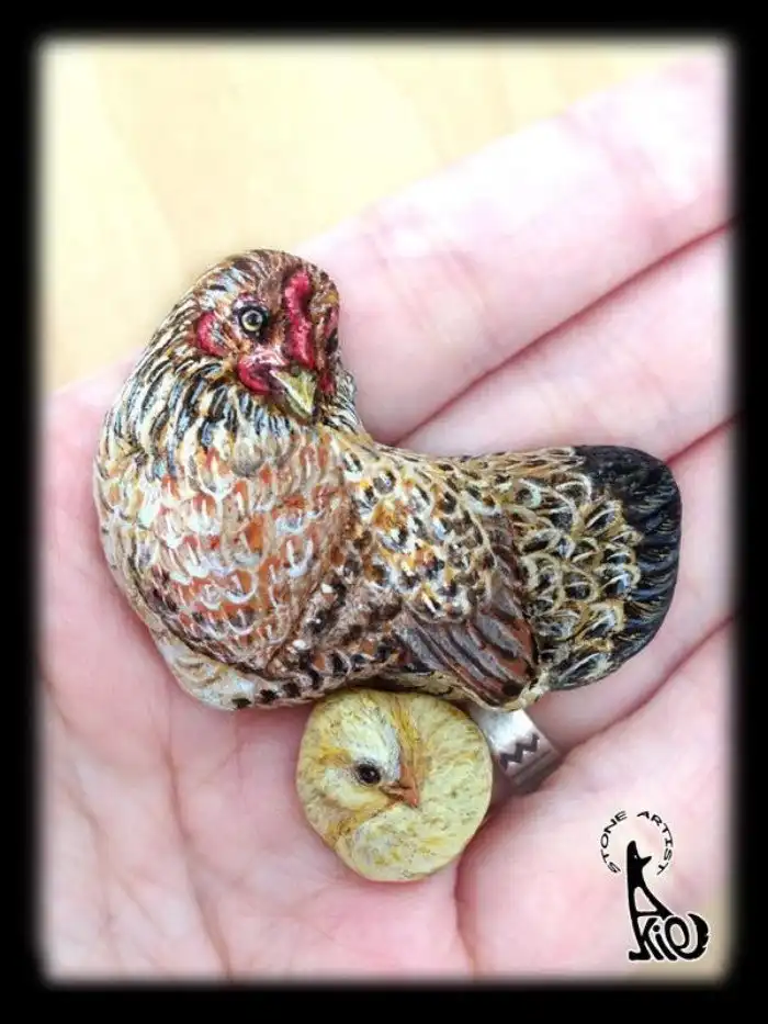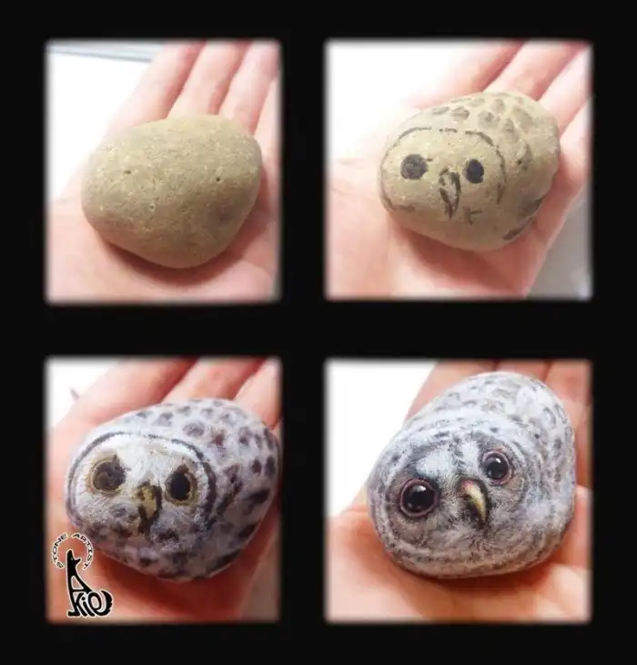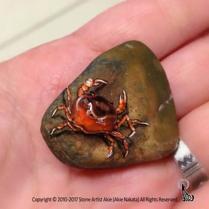 Художница Аки Наката говорит, что не она находит камни, а камни находят ее. Процесс превращения куска породы в ожившего зверя или птицу проходит долго.