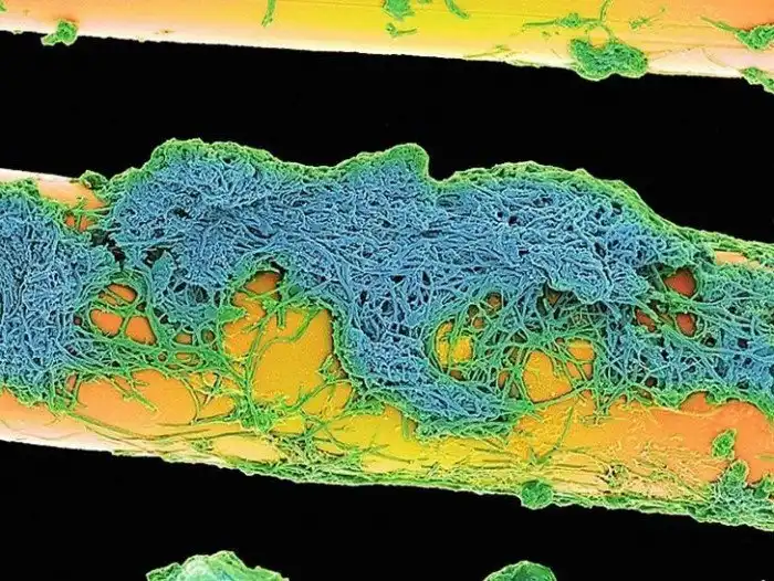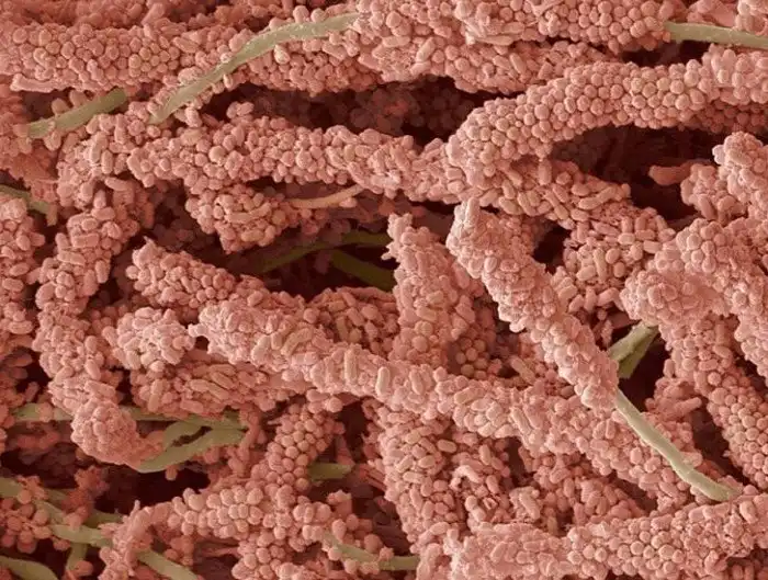 Бактерии, образующие налет, при увеличении в 8000 раз.