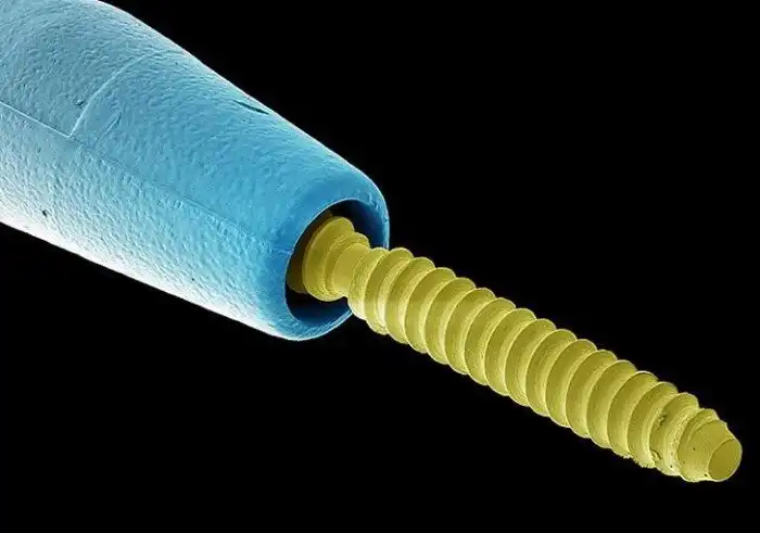 Зубной штифт для укрепления материала для пломбы и коронок, когда крупная часть зуба разложилась или отсутствует.