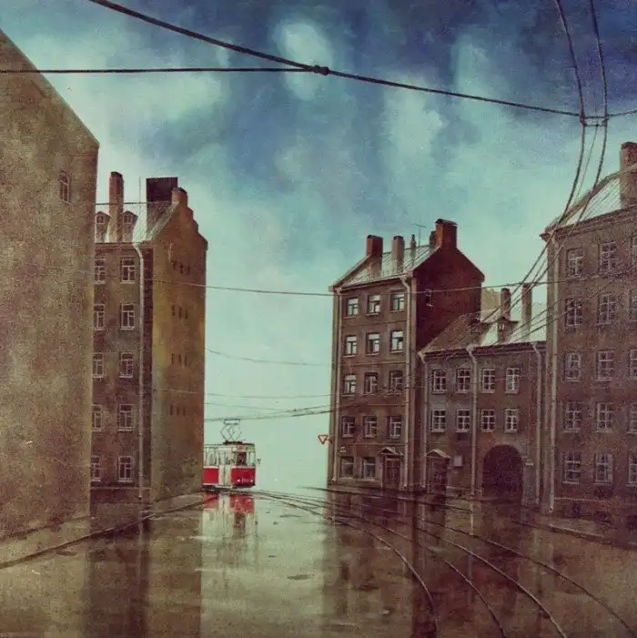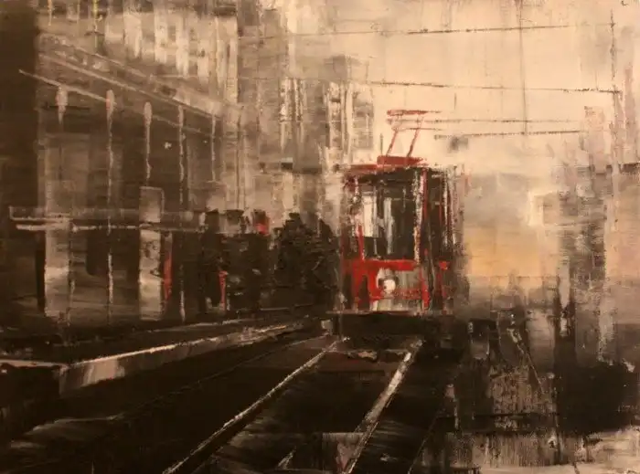 «Трамвайная остановка. Утро». Художник Тибор Наги (Словакия, род. 1963)