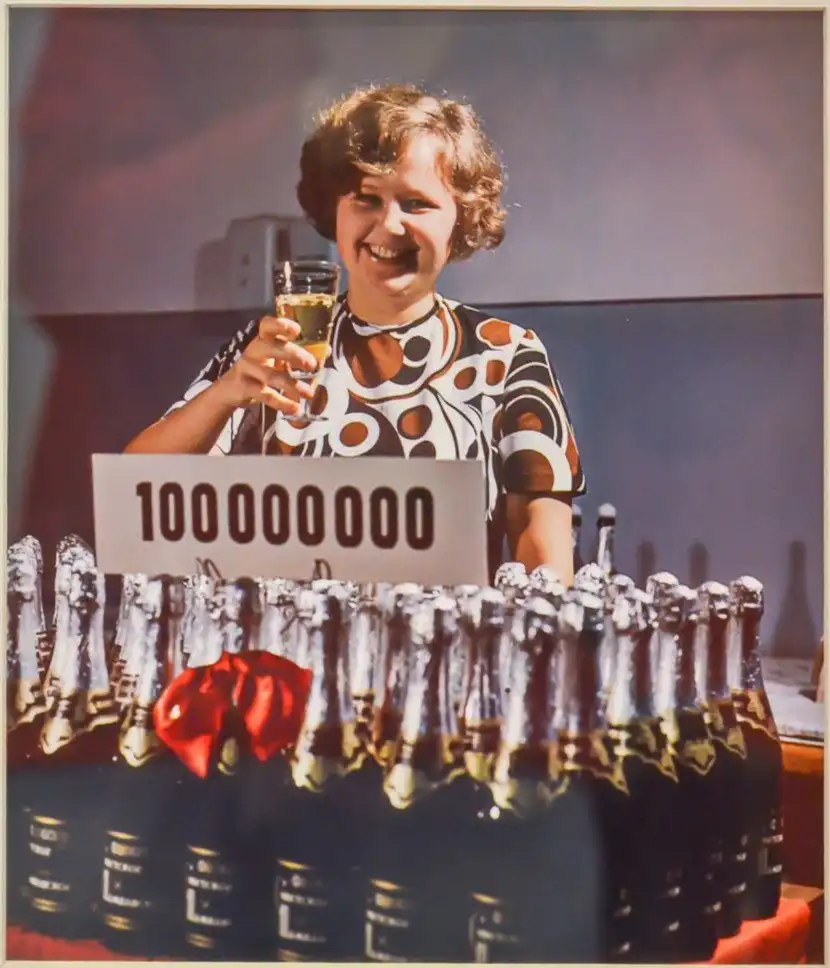 "Стомиллионная бутылка шампанского, произведенная в СССР". Журнал "Огонек". СССР. 1958 год.