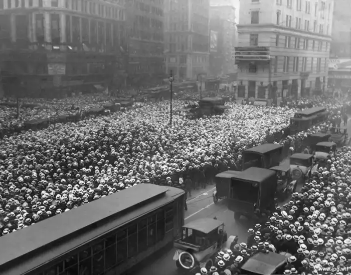 Более 10 000 человек ожидают исход поединка боксеров Джека Демпси и Жоржа Карпентье, Нью–Йорк, США. 1921г.