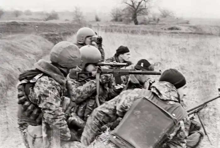 Солдаты внутренних войск МВД СССР на позиции. Юго-Осетинская автономная область. Грузинская ССР. СССР. Апрель 1991 года.