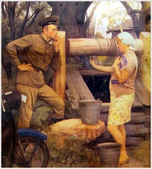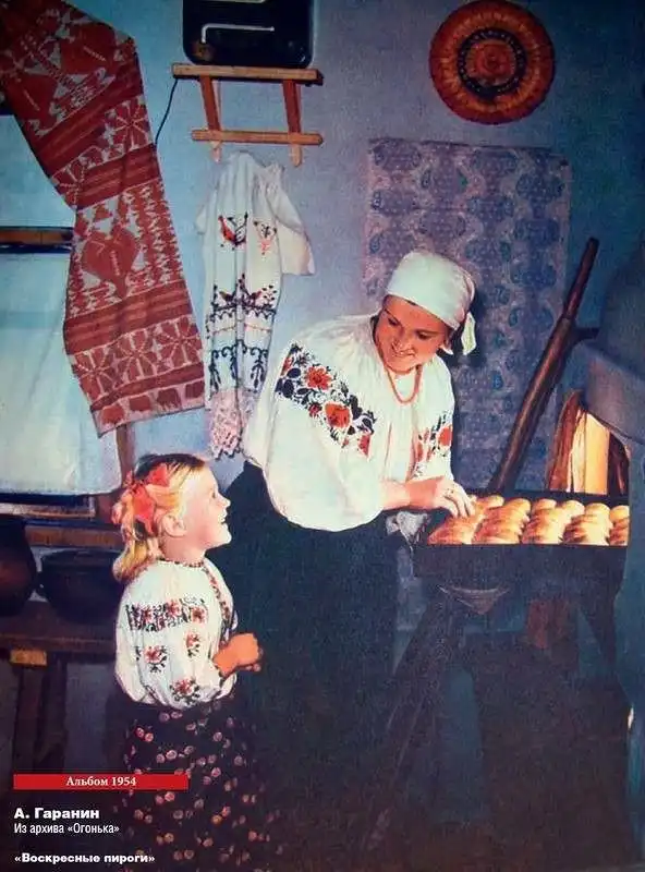 Из примет цивилизации 20 века — только радиоприёмник. Интересно, какой местности вышивка? В СССР очень любили подчёркивать этническую самобытность национальных республик.