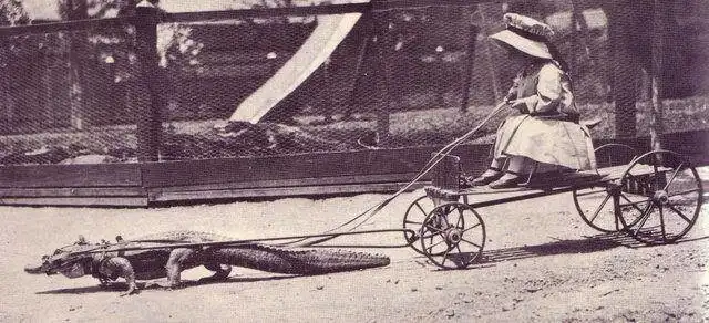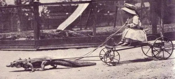 Девочка использует крокодила вместо лошадки. США. конец XIX века.