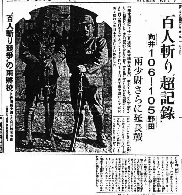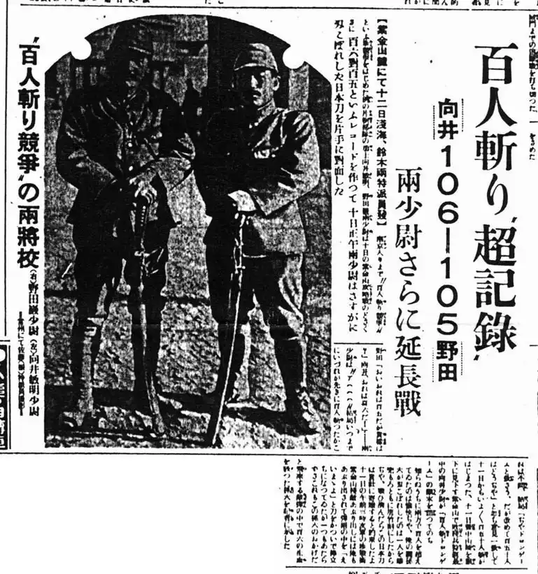 Статья о победителях в соревновании по обезглавливанию на скорость во время японского вторжения в Китай, 1937 год.
