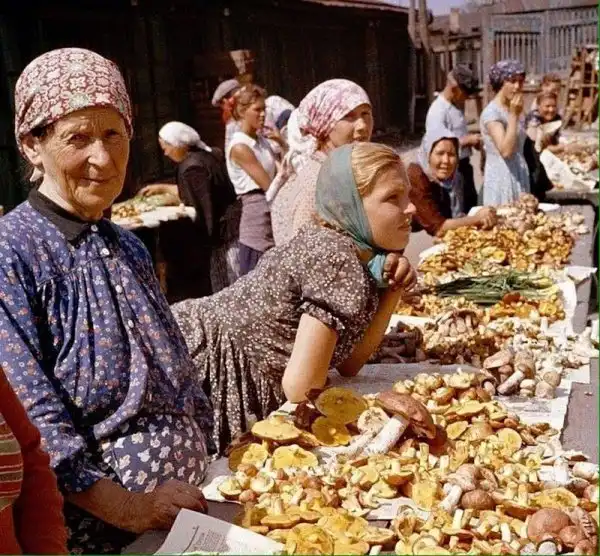 Продажа грибов на Даниловском рынке в Москве, 1959 год.