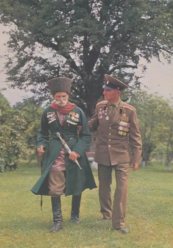 Отец - Георгиевский кавалер и сын - полный кавалер ордена Славы. Семья Ваначи из села Лыхны Гудаудского района Абхазии. На тот момент Темури Ваначи было 112 лет . 1970 год.