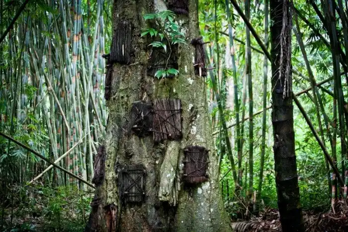 Среди балийцев и в племенах австралийских аборигенов и североамериканских индейцев был распространен обычай привязывать трупы детей, помещенные в гробы, к деревьям. В частности, тибетцы считали, что подобные погребальные леса помогут духу мертвого ребенка возродиться в раю, а также поможет предотвратить смерть другого ребенка или несчастье в семье.