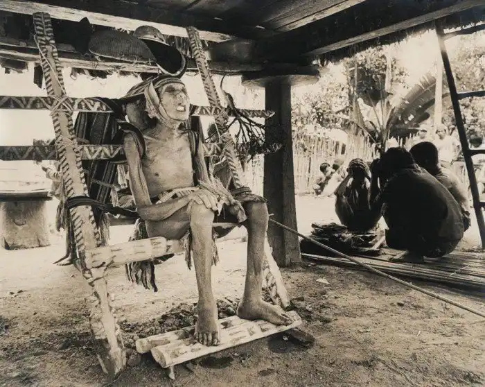 Дань умершим ифугао зависела от ранга умершего в обществе. В рамках разработанного траурного ритуала труп находился в сидячем положении на этом стуле около 2 недель для знатных людей и 2 -3 дня для простолюдинов. После этого останки переносились в место захоронения возле горы и помещались в сидячем положении, после чего засыпались камнями и скалами.