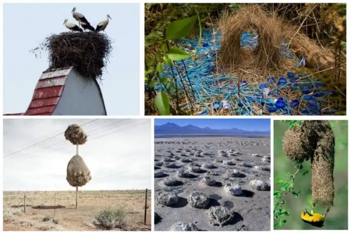 Интересные гнезда, для привлечения самок, строит шалашник - расчистив территорию и построив из веточек шалаш, он украшает его яркими ягодами, цветами, камушками, даже мусором.