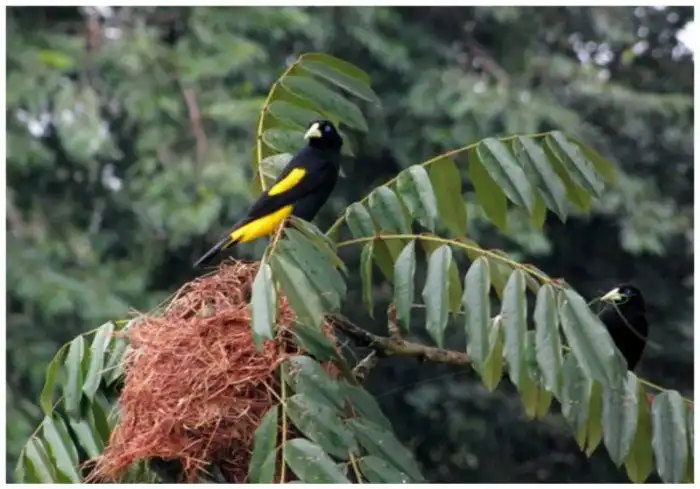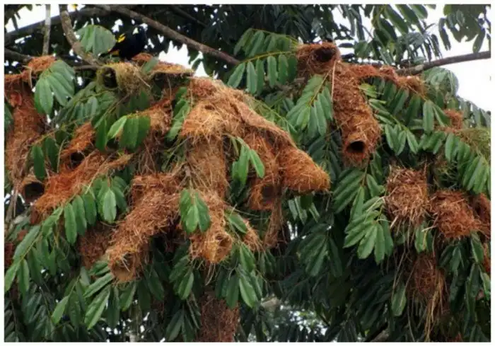 Огромными колониями также гнездятся касики и оропендолы, строя на деревьях огромные города.