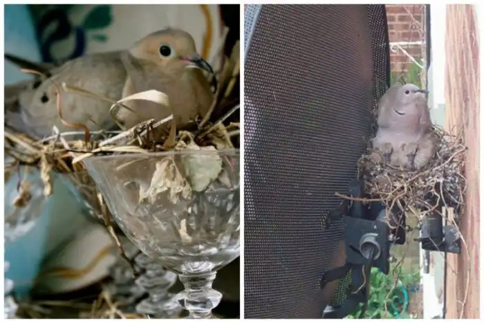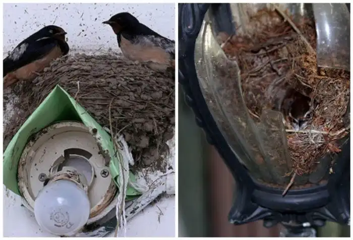 После того, как птенцы подрастут, самка изнутри разбивает гнездо и вылетает, вместе с птенцами.