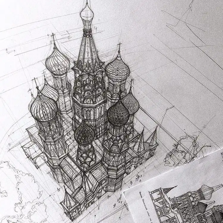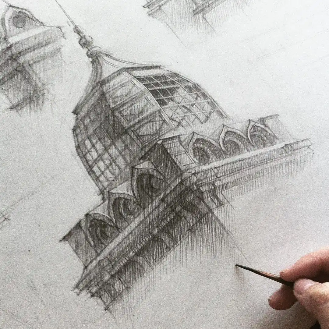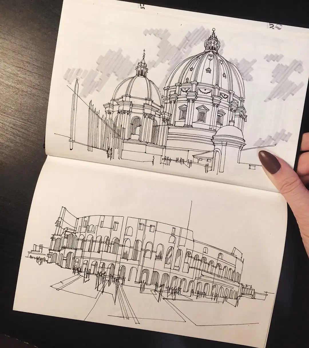 Аделина Гареева еще только студентка, но ее архитектурный талант развивается не по дням, а по часам. Она рисует невероятно подробные эскизы различных зданий и сооружений от руки и уже набрала почти 25 тысяч подписчиков в Instagram. Девушка учится в Казани, часто путешествует по миру и делает зарисовки достопримечательностей из тех мест, где бывает. Ее итальянские эскизы просто невероятные. Аделина уделяет особенное внимание деталям и проекции, что делает ее рисунки крайне реалистичными.