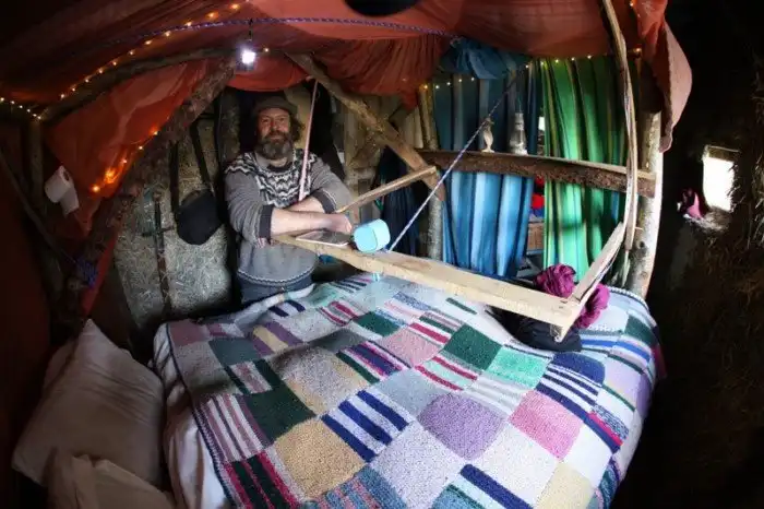 Любители природы Кейт Берроуз и её партнер Алан из Великобритании построили себе жилище из стволов деревьев, веток, глины и соломы после того, как были вынуждены cъехать из дома из-за постоянных гриппоподобных симптомов.