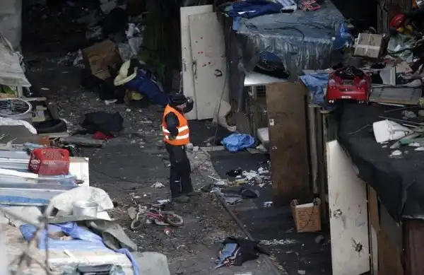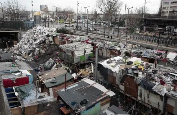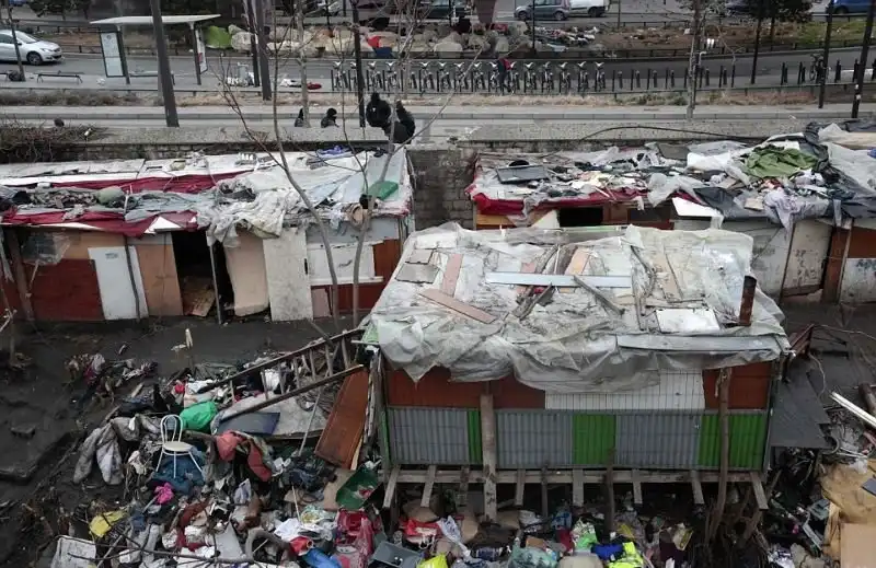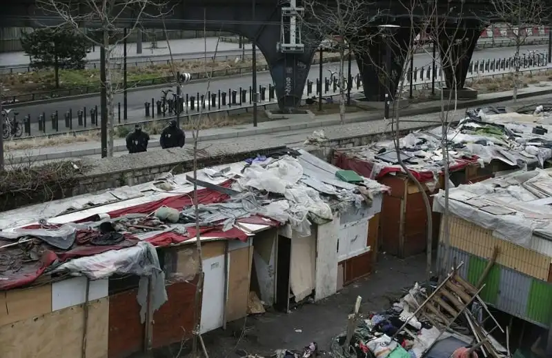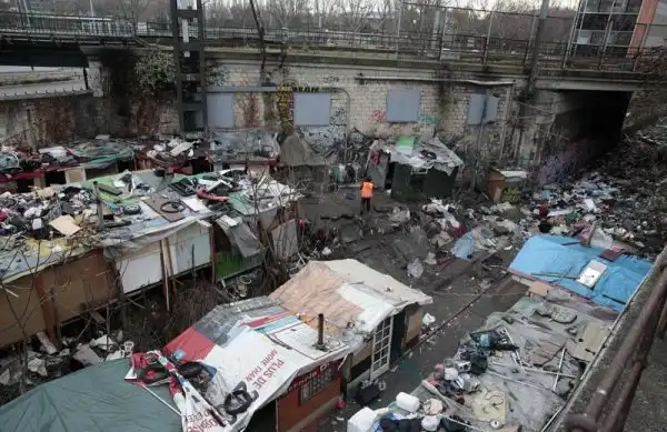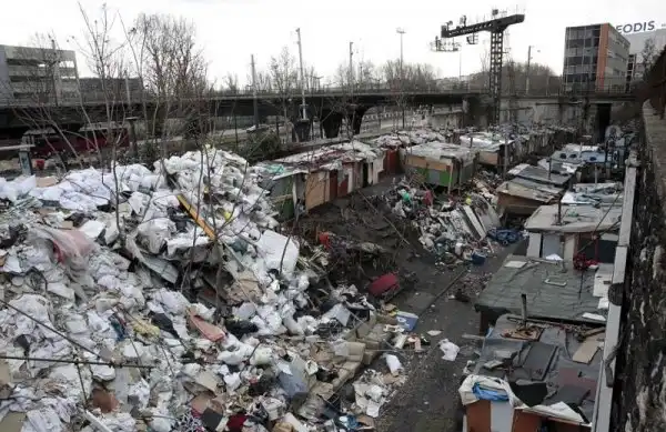 На фотографиях - последствия пребывания кочевников ромской национальности вблизи Порт-де-ла-Шапель, Париж. Глазам прибывшим для расчистки рабочим предстала 9-метровая стена из забитых мусором пластиковых мешков и ряды импровизированных лачуг. Подобный лагерь был демонтирован в этом же месте всего год назад.