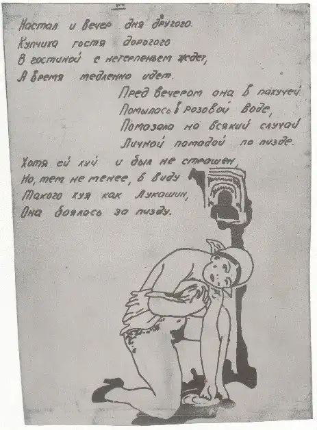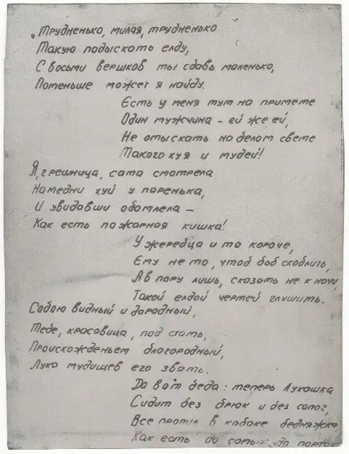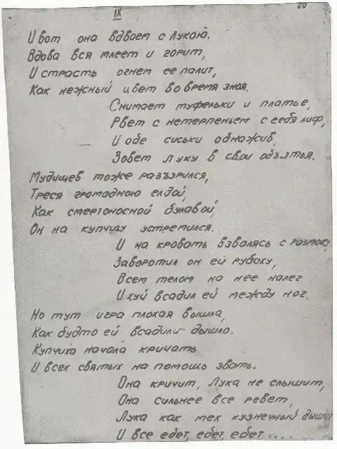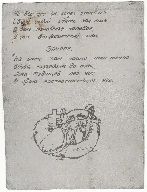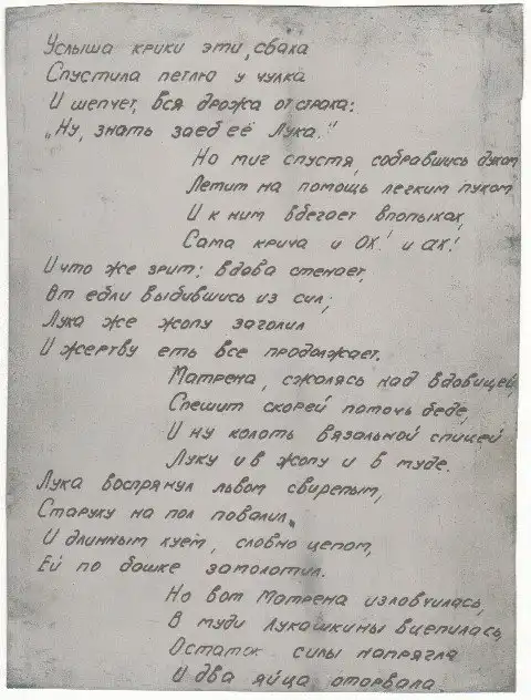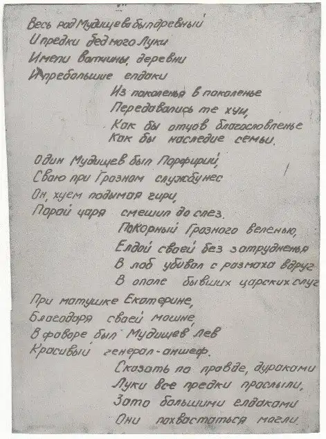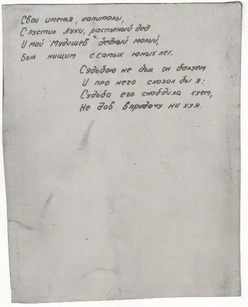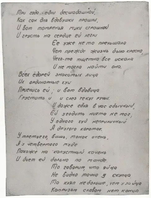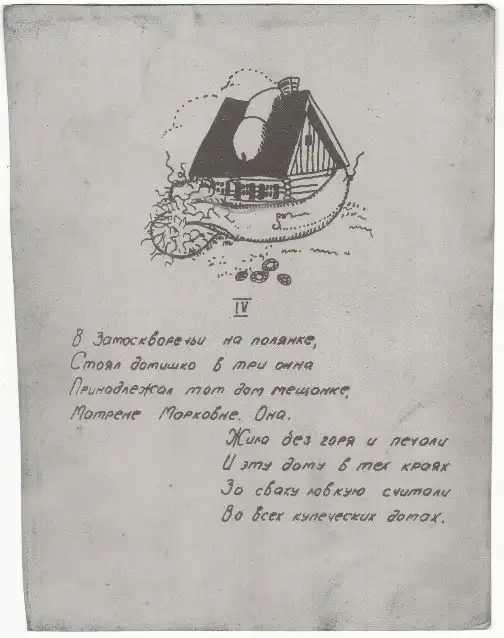 Копии с бумажного(?) носителя на алюминиевых пластинах толщиной 0,2 мм. Похоже на то, что на пластине печатались сразу несколько страниц поэмы, потом пластины в несколько слоев резались ножницами. Края кривые, в один слой так криво даже специально не разрежешь.