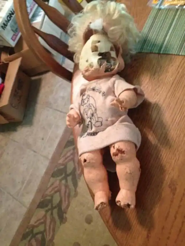 Такая находка очень трогательна - глядя на эту куклу-инвалида, можно долго фантазировать о том, каким было детство бабушки, и во что она играла с этой куклой, коглда та была еще только что купленной красоткой. Ну, а извращенцы могут сыграть в ужастик - эта игрушка отлично вписывается в образ куклы-монстра.