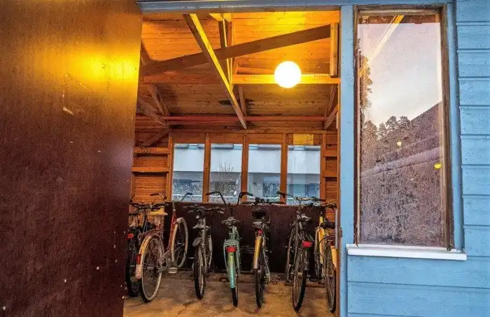 Зато много велосипедов, которые хранятся в специальном “гараже”, ключ от которого есть у всех жильцов. Сарайчик один на дом, и кроме великов, там хранят санки и детские коляски. Удобно.