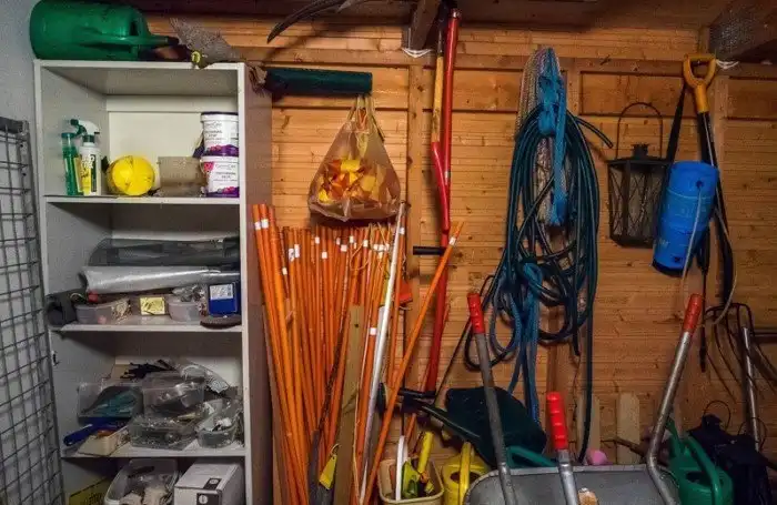 Комната с инвентарём. Всё что угодно, от садовых тачек и грабель до бензопил и лопат. Мало ли, что пригодится. Ключ от комнаты тоже есть у каждого жильца, инструментом можно пользоваться бесплатно.