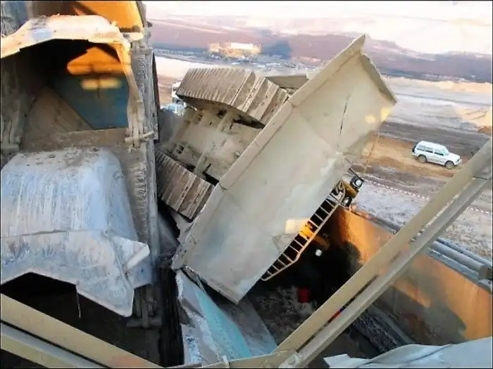 Bagger 288 – это не только роторный экскаватор для добычи полезных ископаемых, но и дом. Чтобы спустится с рабочего места, которое находится практически на самой его верхушке, рабочему придется пройти немалый путь.