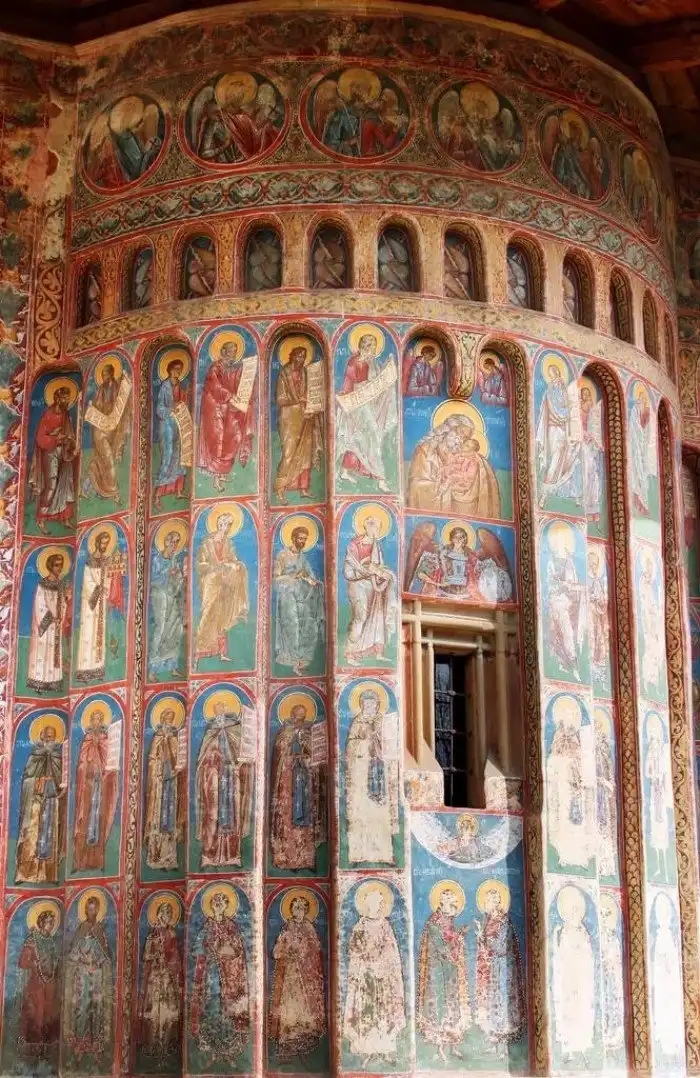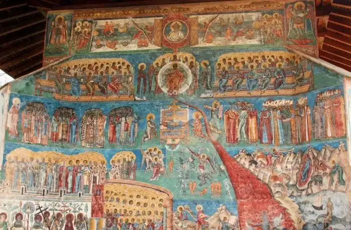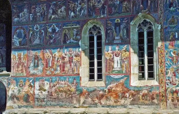 Учитывая технологию создания фресок, удивительно, что это оформление внешних стен не пострадало ни от времени, ни от погодных условий. Пожалуй, самый известный из этих монастырей — Воронец, где лазурно-голубой фон фресок даже дал название такому оттенку в румынском языке.