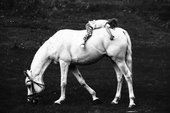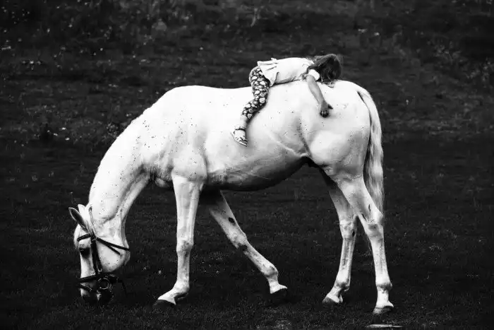 Девочка дружит с этой лошадью целый год. Для нее это счастье. Город Воронеж.