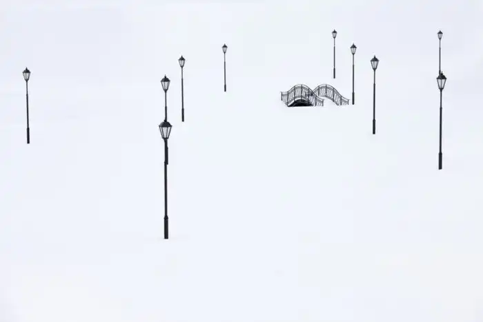 Камни, принесенные ветром на лед Байкала, днем нагреваются от солнца и растапливают лед под собой, оставаясь стоять на тонкой ножке. Мыс Уюга, Иркутская область.