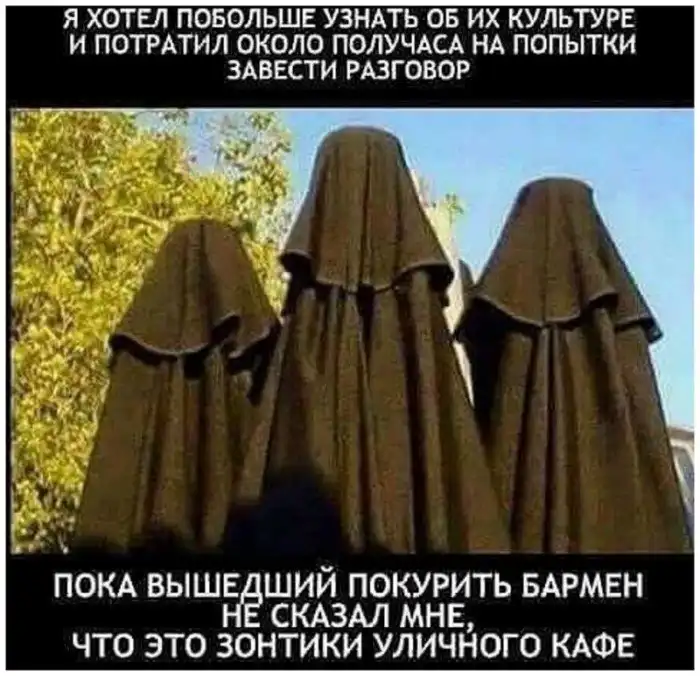 Хотя, ничто человеческое под паранджой не пропадает. Удобно есть...