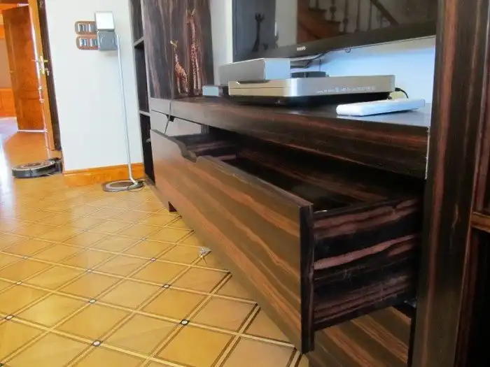 Несмотря на дороговизну, не обошли стороной эту породу и производители половых покрытий. Из черного дерева делают паркет и паркетную доску. Получается очень красиво, но такое удовольствие доступно только очень обеспеченным людям, даже если паркет сделан не из черного африканского, а из зеленого азиатского эбена.