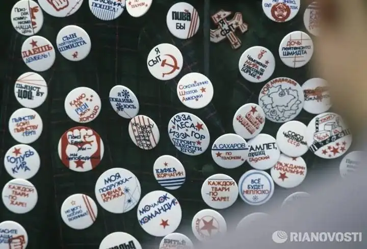 Продажа значков в Центральном парке культуры и отдыха имени М. Горького, 1990 год. РИА Фото, Юрий Простяков