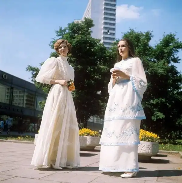 Демонстрация коллекции свадебных платьев салона модной одежды Москвичка Москва, 1974 год