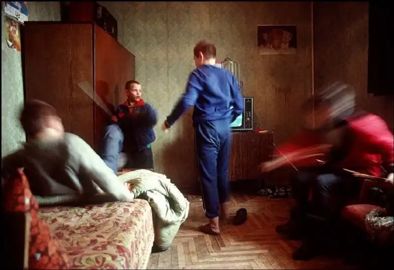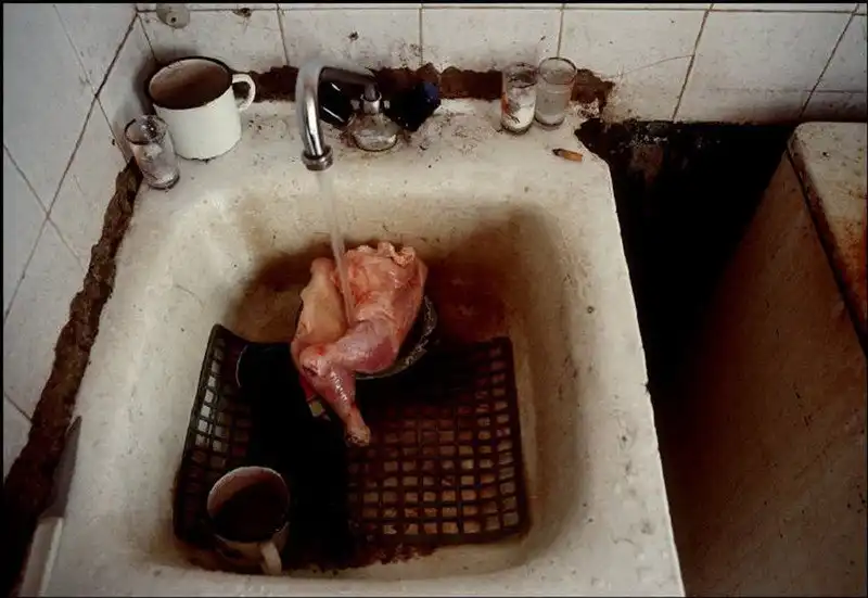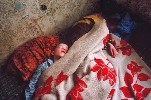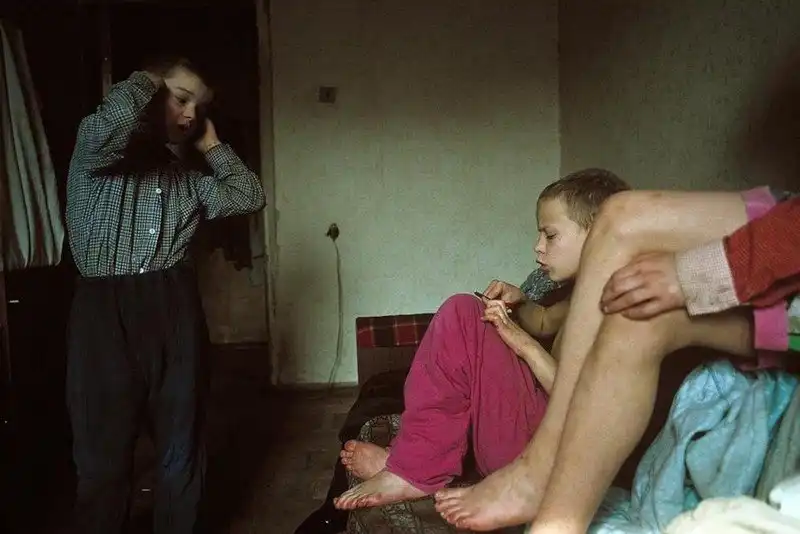 Фотограф Лиз Сарфати - француженка, живущая в США с 2003 года. В 90-х много работала в России. Приезжает и сейчас, но уже с мастер-классами. Шокирующая фотосессия "Семья Яковлевых" была снята в Москве в 1993 году. В столице сейчас конечно так уже не живут, но в России полно мест, где такие картинки - обыденность. А потому фотооткровениям Лиз еще рано перекочевывать в папку с историческими артефактами.