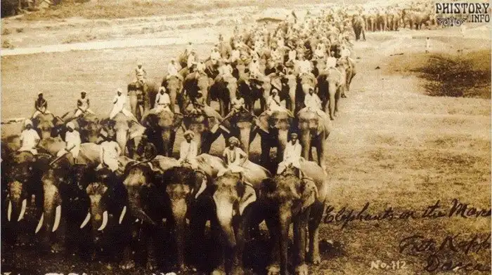 Парад слонов в Дакке, Бенгалия, Британская Индия, 1900 год.