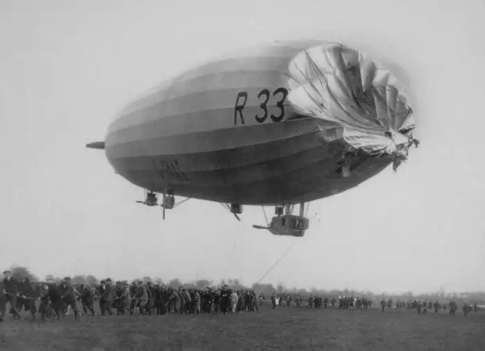 Британский дирижабль после столкновения с причальной мачтой, 1925 год.