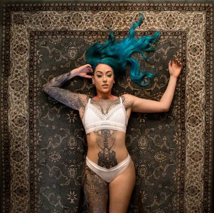 Прошло почти два года, и модель провела около 127 часов у тату-мастера (15 полных суток) и потратила около 20 тысяч австралийских долларов (15 тысяч долларов США). Девушка поначалу не собиралась делать что-то еще, кроме тату на руке, но подружилась со своим тату-мастером Коэном Митчеллом из Окленда и не смогла остановиться.
