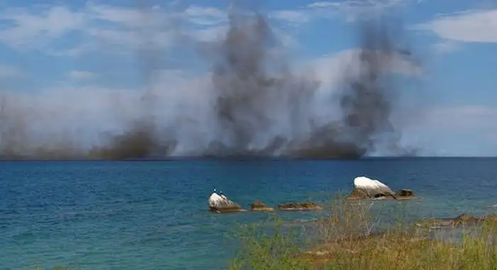 Это полчища мошек, которые ежегодно собираются над озером для того, чтобы дать потомство.