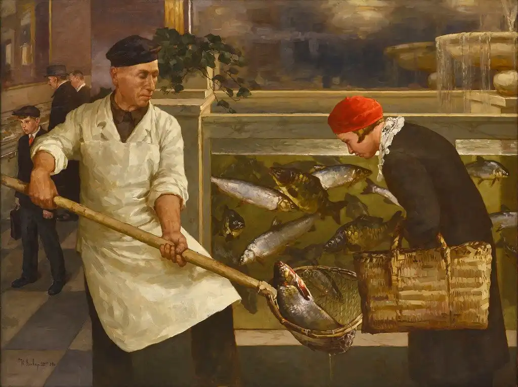 Ю. Ю. Клевер (младший). В рыбном магазине. 1938.
