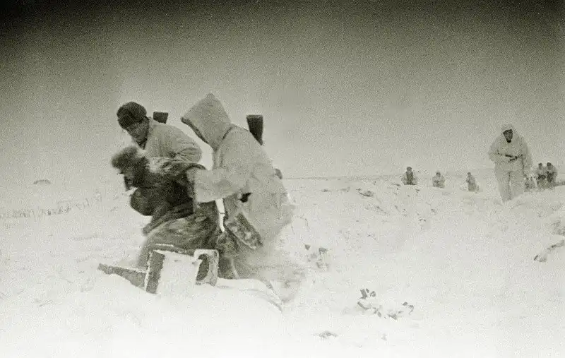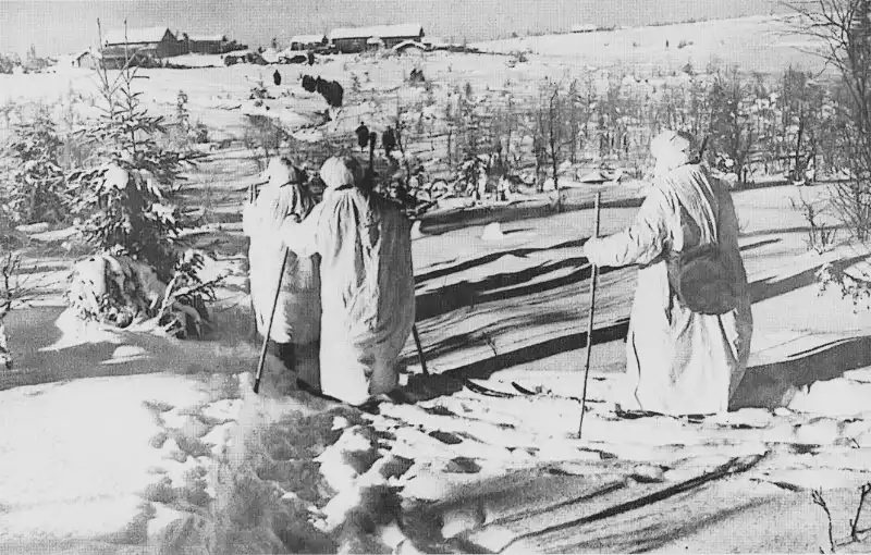 Разведгруппа РККА возвращается из-за линии фронта. Удачно сходили, - "языка" тащат.