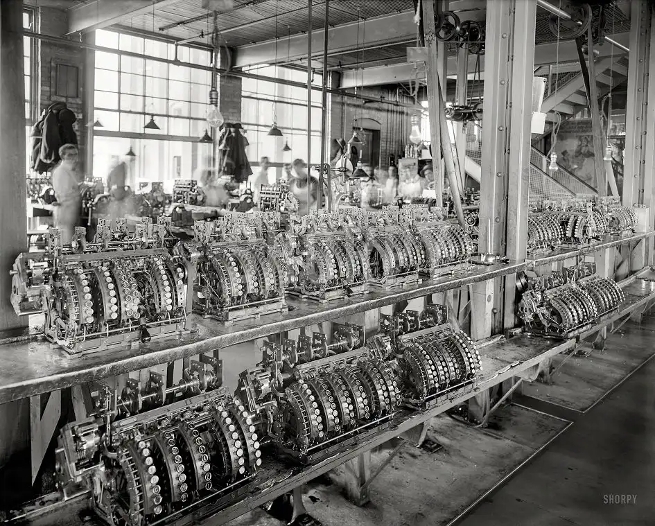 Производство кассовых аппаратов на заводе в Дейтоне, штат Огайо, 1902 год.