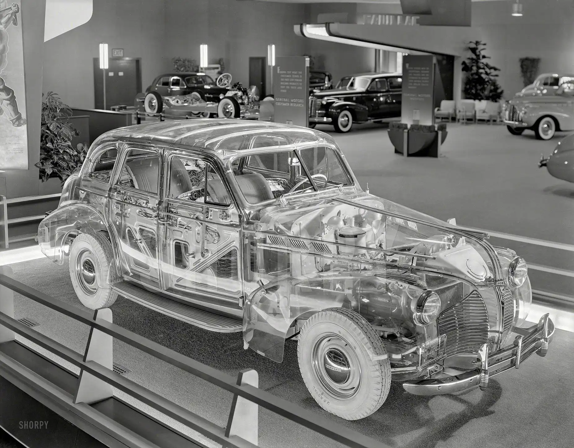 Pontiac с прозрачным кузовом из плексигласа на стенде фирмы General Motors.