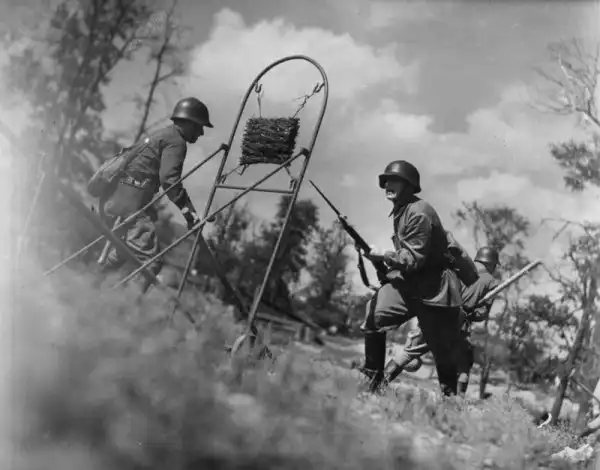 Как известно, Швейцария в Первой Мировой не участвовала, но готовилась. И в рамках подготовки швейцарские военные инженеры создали такие вот катапульты для метания ручных гранат.